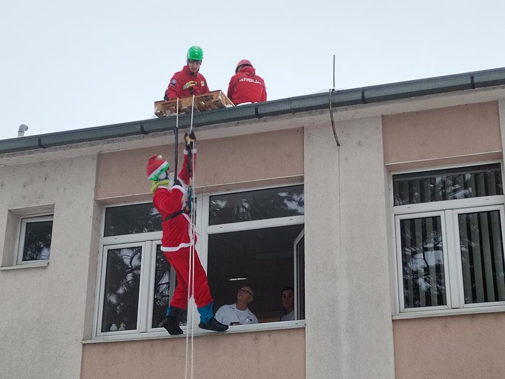 – Ova akcija je već postala tradicionalna. Spasioci iz Gorske službe spasavanja-stanice Valjevo zajedno sa speleolozima Društva istraživača“Vladimir Mandić Manda“, ponovo su usrećili mališane dodelom paketića preko krova se spuštajući u kostimima Deda mraza. Ono što bih istakao jeste da GSS ove godine ovakvu akciju sprovodi u 14 gradova. Dodela paketića u 14 gradova znači preko 1500 dece. Ove godine imamo 15 mališana na lečenju i verujemo da ovaj težak period koji prolaze sa roditeljima u pratnji, bar na trenutak uspevamo da osvetlimo – rekao je spasilac Aleksa Dragojlović.