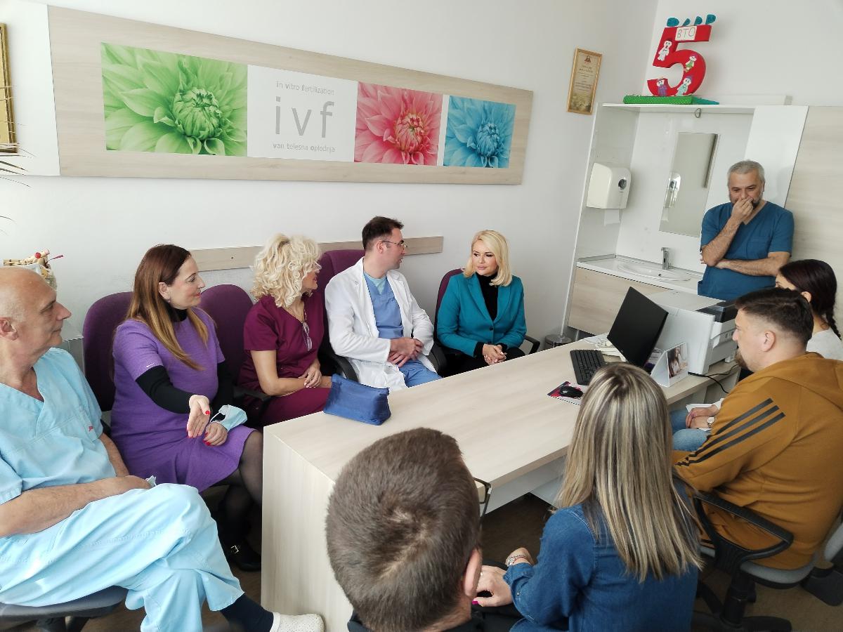 Ministarka za brigu o porodici i demografiju, prof. dr Darija Kisić, posetila je Zdravstevni centar Valjevo i Odsek za biomedicinski potpomognutu oplodnju u okviru završetka pilot projekta „Psihosocijalna podrška za parove sa infertilitetom“, koji je podržan od strane Ministarstva za brigu o porodici i demografiju, Programa Ujedinjenih nacija za razvoj (UNDP) i Ministarstva zdravlja, u okviru nove inicijative „Ljudi čine grad“. Pilot projekat je osmišljen kao program psihosocijalne podrške, kroz koji zainteresovani pacijenti jačaju veštine prevazilaženja psiholoških i socijalnih izazova koje nosi proces pripreme za biomedicinski potpomognutu oplodnju, a sproveden je u proteklih godinu dana. Program koji se sprovodio u Odseku za vantelesnu oplodnju (VTO) i podrazumevao je edukativni susret uoči komisije, kada se pacijenti informišu o programu, kao i 10 individualnih i susreta parova sa pružaocima podrške obučenim psihijatrima, psiholozima i psihoterapeutima zaposlenim u bolnici Valjevo.